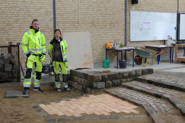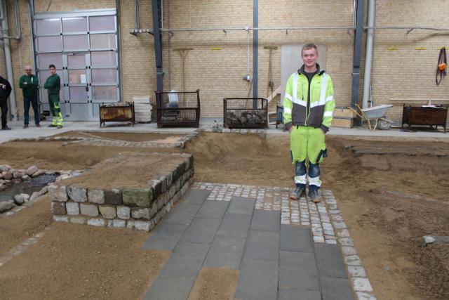 Ricki Larsen er endnu ikke så langt i sit elevforløb, at han behøver bekymre sig om sin svendeprøve endnu. Han benyttede alligevel Talent Camp til at træne belægningsarbejdet.