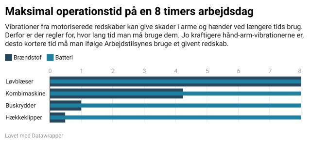 Moderne håndredskaber, der bliver brugt i driften af grønne arealer, er lang bedre til at passe på medarbejdernes helbred, men en brændstofmotor vibrerer stadig en del. Derfor er der regler for, hvor længe man må arbejde med forskellige vibrerende redskaber i løbet af en dag.
