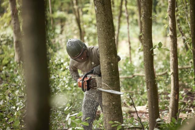 Før i tiden blev træerne i skoven fældet med økse, sav og motorsav. I dag spiller skovningsmaskinen i stedet den afgørende rolle og har siden slutningen af 1970’erne være en del af det moderne skovbrug.