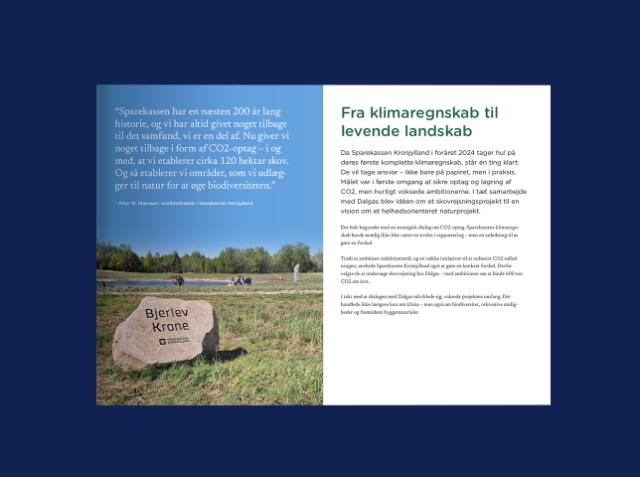 Da Sparekassen Kronjylland i foråret 2024 tager hul på deres første komplette klimaregnskab, står én ting klart: De vil tage ansvar – ikke bare på papiret, men i praksis. Målet var i første omgang at sikre optag og lagring af CO2, men hurtigt voksede ambitionerne.