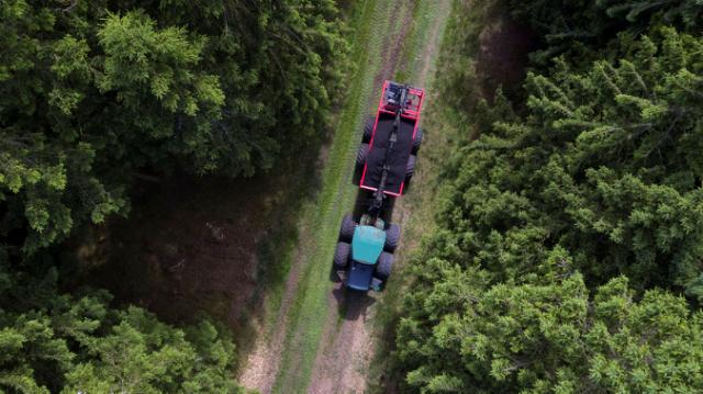 - Vi spreder asken i skoven med en specialmaskine